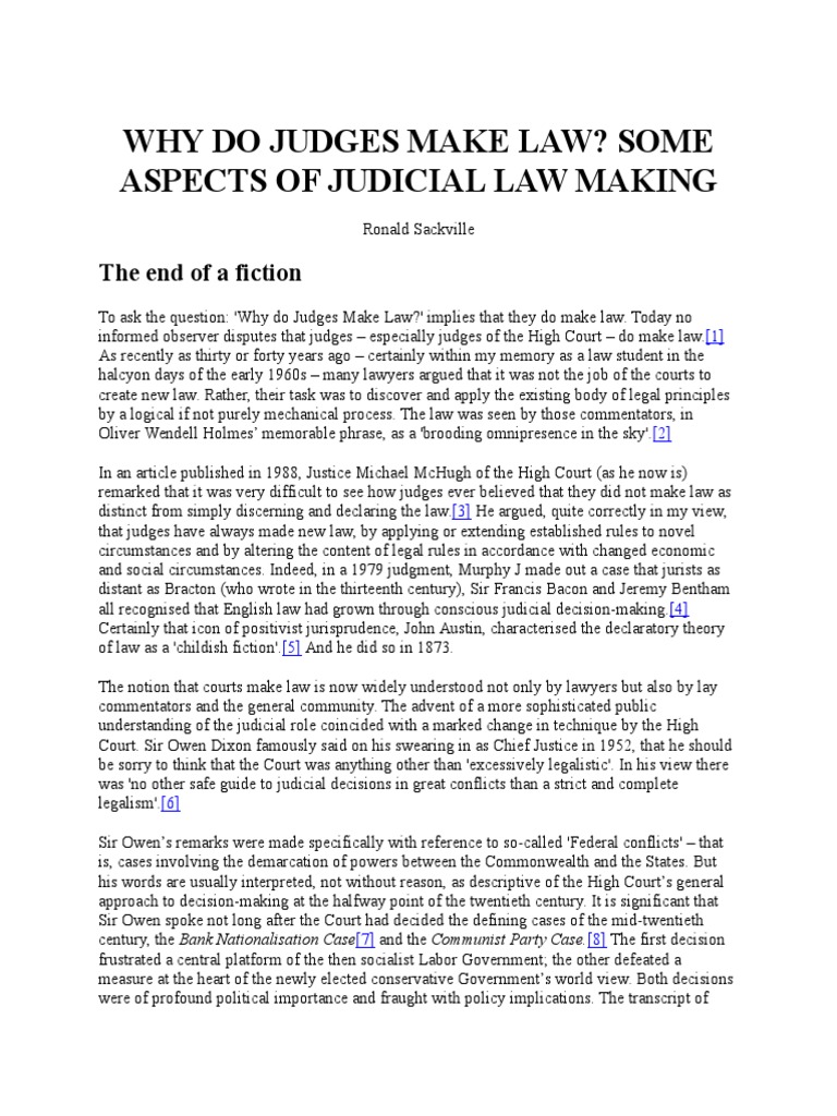 Judicial power involves making binding decisions, do judges make law uk essay, affecting the rights and duties of people and institutions, by reference to existing law. Existing law is found in legislation, judicial decisions or common law, and the constitutions.